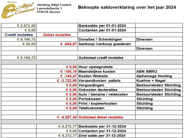 Het is weer tijd om onze financiën over 2024 te publiceren en daarom plaatsen wij hier het beknopte overzicht.