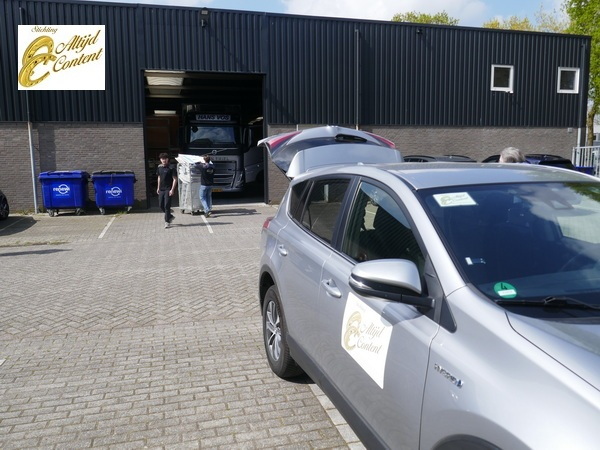 De hulpgoederen waren keurig netjes ingepakt in verhuisdozen van de Kievit verhuizingen uit Venlo, van Thiel en Hans Vos verhuizingen uit Helmond.
