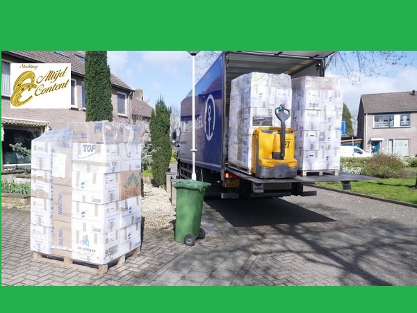In 2024 zijn er drie zendingen met 20 pallets verzonden en helaas konden de 7 pallets die klaar stonden en de achtste die nagenoeg vol was dit jaar niet meer de deur uit.