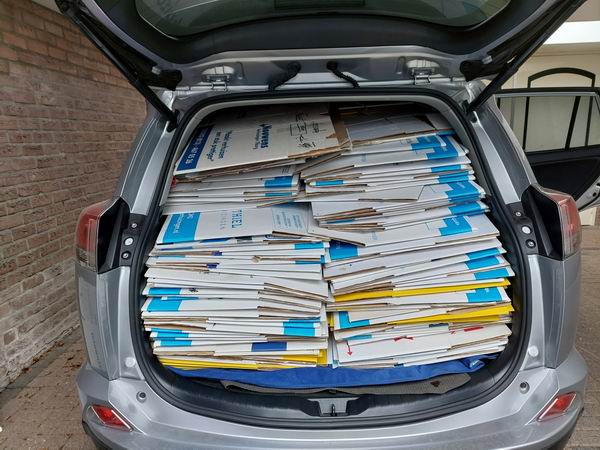 De schoolspullen zijn naar het basisonderwijs gegaan en het papier heeft zijn plaats gevonden bij een gymnasium evenals de enveloppen. Beide instellingen zijn hier erg mee geholpen en dat scheelt hun ook in de financiën.