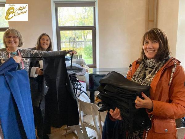 Moeders met kinderen bedanken u voor de mooie kleding en schoenen die ze voor hunzelf en de kinderen mee naar huis konden nemen.