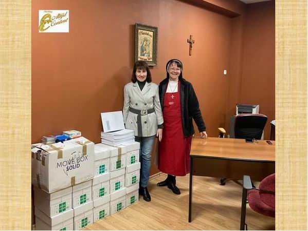 Het is niet overal toegestaan om foto’s te maken van het verdelen van uw hulpgoederen in verband met de wet op de privacy daarom proberen wij zoveel mogelijk schriftelijke informatie met u te delen. Op de onderstaande foto’s een blije medewerkster van het gymnasium en een medewerkster van het Albalsta Center,